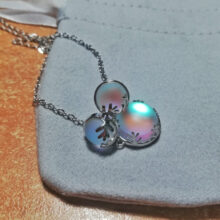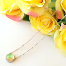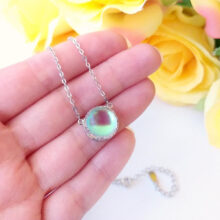 Gorgeous necklace! The product is made very carefully, without any flaws. Looks great. Crystal changes color in different lighting. Shimmers in sunlight with different nuts and flowers. It looks fascinating and spectacular. Pleased with fast delivery. The store is very kind. I recommend.