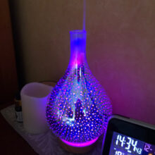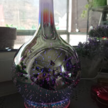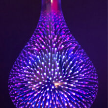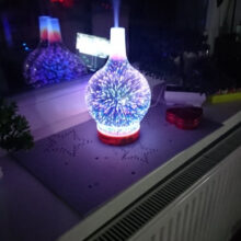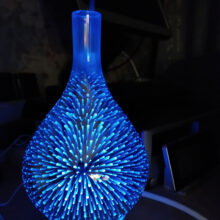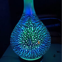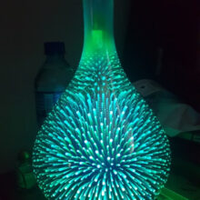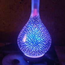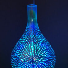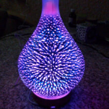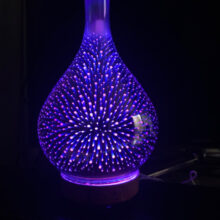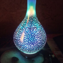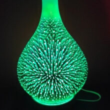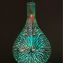 The Firework Diffuser contains an intricate light pattern that resembles fireworks frozen in time – a truly unique work of art! A changing array of colors flash as LED lights shift through 6 mesmerizing patterns, providing hours of relaxation. Holds up to 1L of water that lasts 4-8 hours. A timer can be set to stop the device on a schedule. The device works with all essential oils – we recommend peppermint, especially during the holiday season!