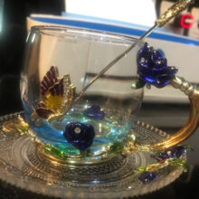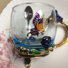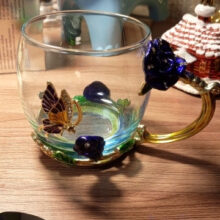 PERFECT HANDMADE ENAMEL CUP: The handmade enamel glass cup has an elegant style with butterfly and rose flower 3D designs. There are no cups exactly like yours in the world. Yours is only one and will never fade as time passed, even if you use the mug daily. The glass material of the cup is glittering and translucent, classic but refined and the noble stylish look is functional yet decorative.