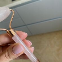 👉 After cleansing and toning, smooth a few drops of facial oil into the skin. This will help the Facial Roller glide across the skin with ease, while the roller will help the facial oil to absorb better, increasing its benefits.