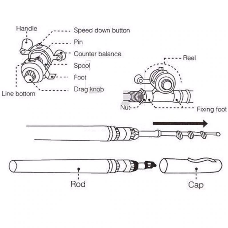 Rod and reel work perfect casts good fits in pocket great would recommend for backpaacking