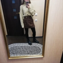 The skirt is good, but the size is large. With the table does not match. My hips are 94 cm. I thought in obtyag will be the size of L. and it is great (and I would like to shorter.